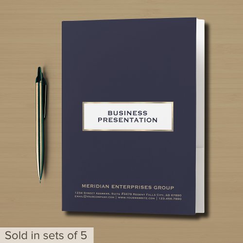 Professional Navy Blue Portfolio Gold Logo Pocket Folder