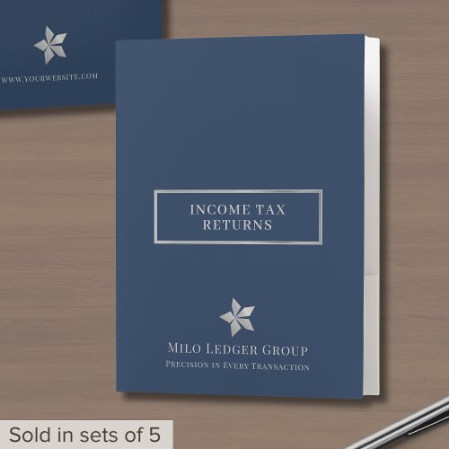 Navy Blue Silver Logo Tax Return Pocket Folder