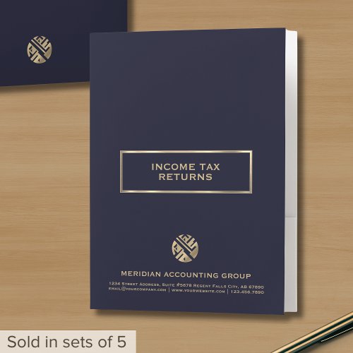 Navy Blue Gold Logo Tax Return Pocket Folder