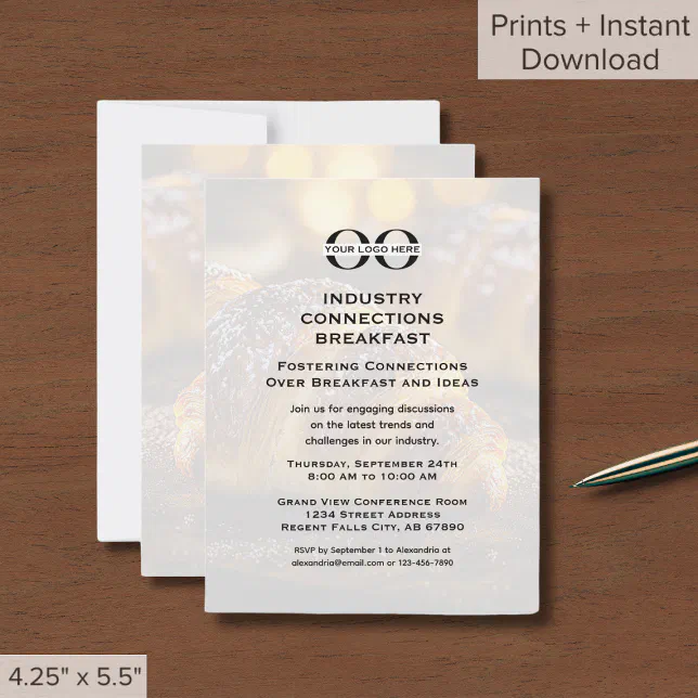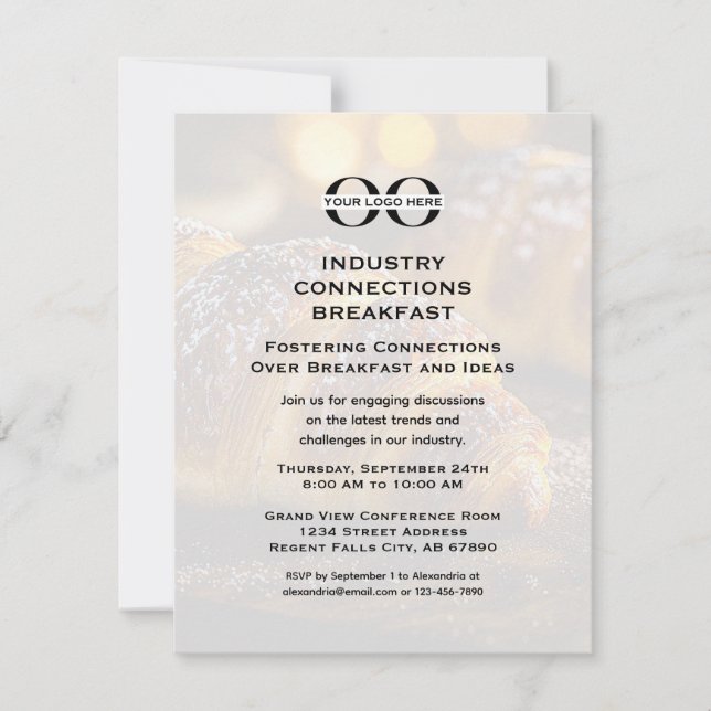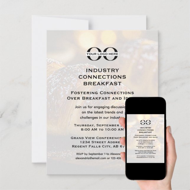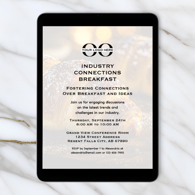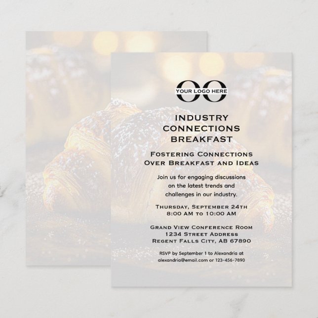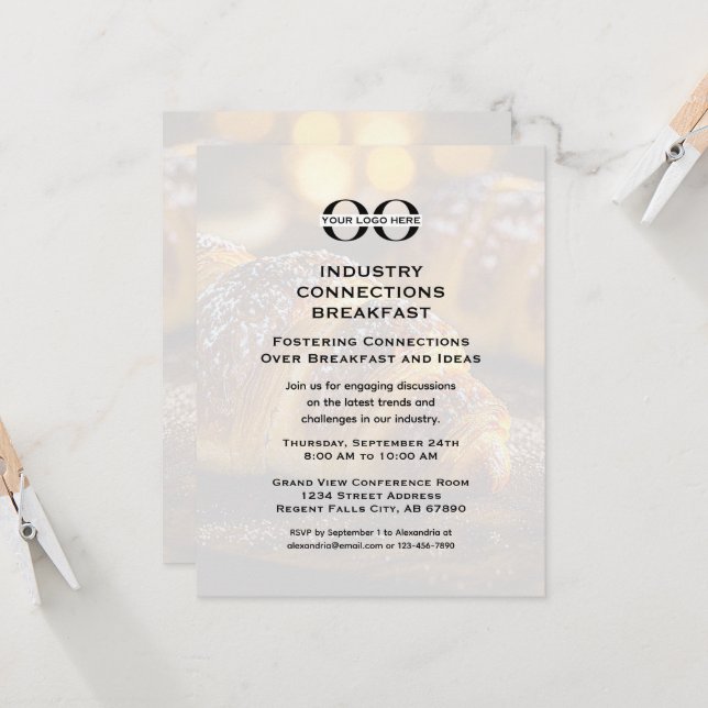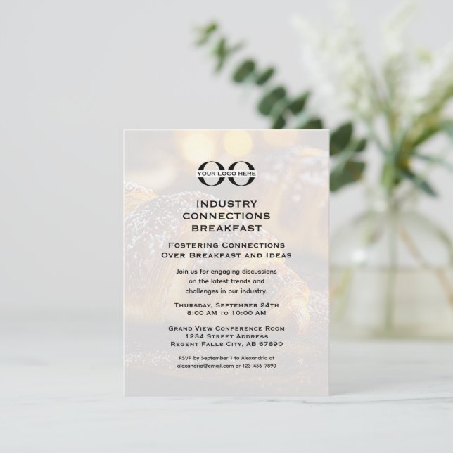 Elevate your networking event with our Breakfast Meeting Invitation with Custom Logo and Background Image. Featuring a simple professional design with classic typography, customizable logo and background image, this invitation sets the perfect tone for your upcoming event. Personalize with your company name, event details, and RSVP information to create a memorable and sophisticated invitation. Make a lasting impression with this timeless design.