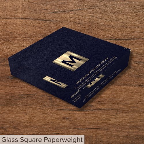 Enhance your workspace with our Elegant Blue and Gold Branded Paperweight. The sophisticated brushed gold monogram initial, paired with your company name, address, and contact information in classic navy blue typography, creates a striking contrast on a rich blue background. Designed to add a touch of elegance to your desk, this paperweight serves as both a functional tool and a stylish accessory. Its substantial weight keeps important documents in place while reflecting your commitment to professionalism. Ideal for estate planners, attorneys, and advisors, this glass paperweight symbolizes attention to detail and dedication to a refined brand image.