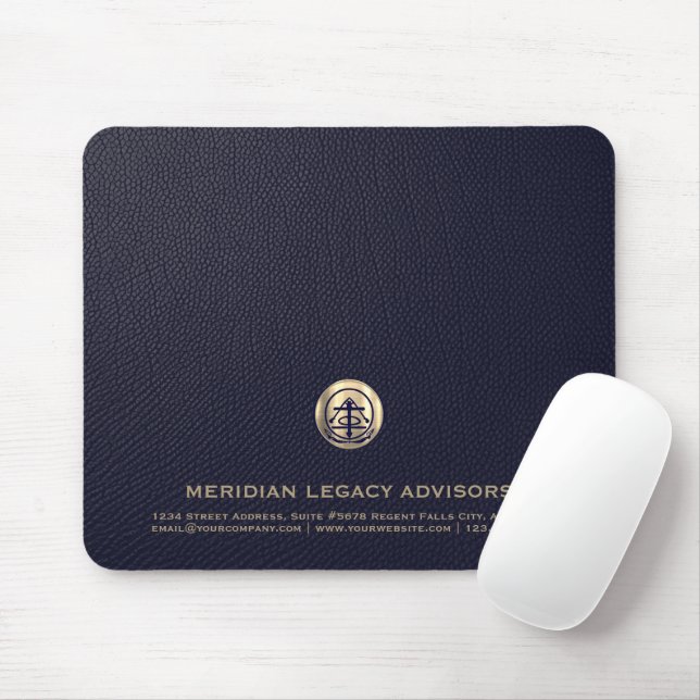 Add a touch of sophistication to your workspace with this elegant blue leather print mouse pad featuring a luxurious gold logo. Perfect for small businesses or companies looking to elevate their branding, this mouse pad is made from high-quality materials and provides a smooth surface for precise mouse movements. The gold logo adds a personalized touch to your desk setup, making it a great gift for yourself or a colleague.