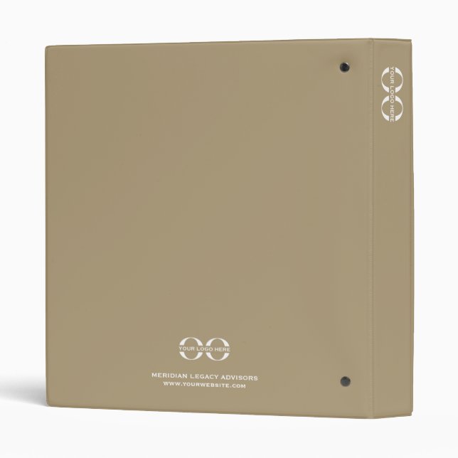 Elevate your brand with our Simple Modern Binder with Custom Logo, featuring a solid banner on the left with your customizable company name presented vertically in classic typography. The remainder of the front showcases your logo elegantly placed in the right-hand corner in the lower thirds. The spine of the binder displays the logo. The back also features the logo in the lower thirds on a solid navy background with ample space below for your company name, website, or customizable text. Impress clients, colleagues, and partners with this sophisticated and professional presentation binder, ideal for making a lasting impact during meetings, consultations, or any business-related activities. Bulk orders are available with no minimum. Bulk discounts are available; see details here: https://www.zazzle.com/business/bulk.