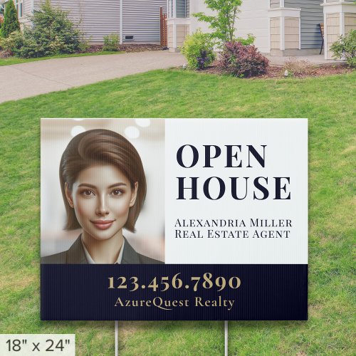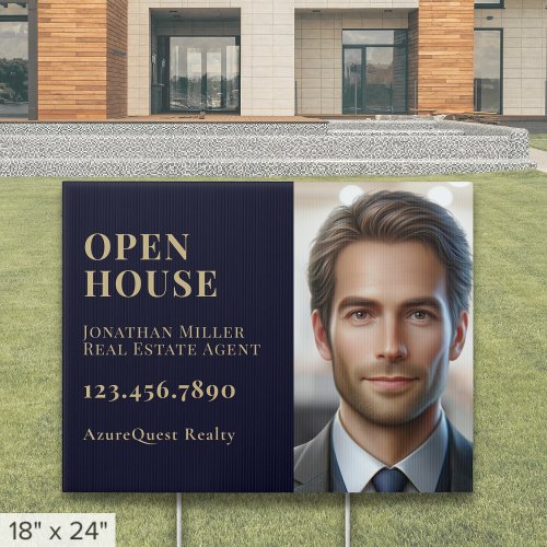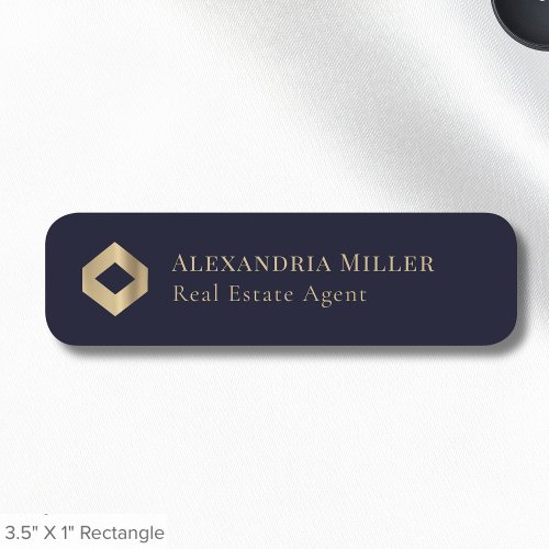 Navy Blue Modern Elegant Logo Desk Name Plate